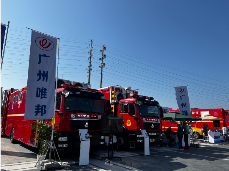广州唯邦携扩展方舱型通信指挥车、小型水罐消防车、盥洗消防车亮相第二十一届中国国际消防设备技术交流展览会。